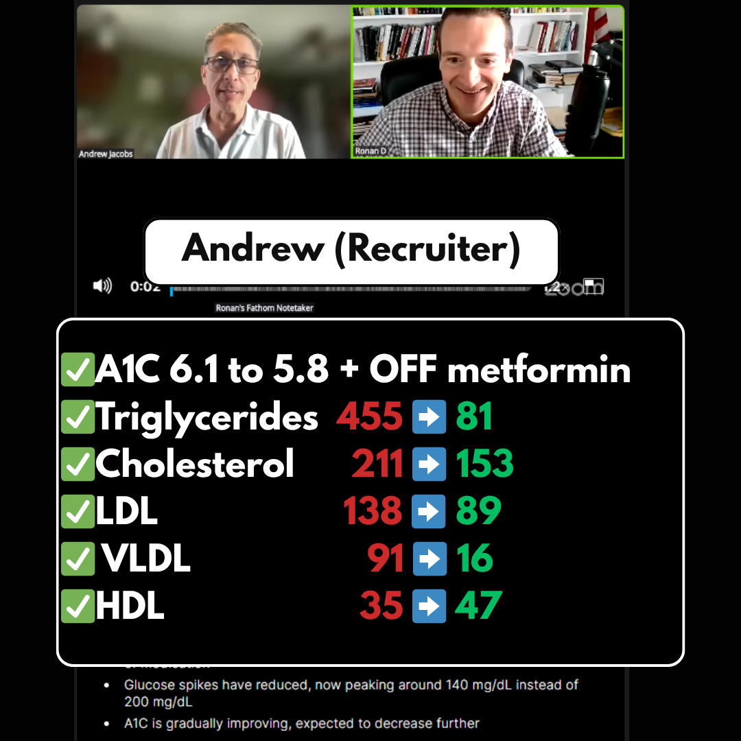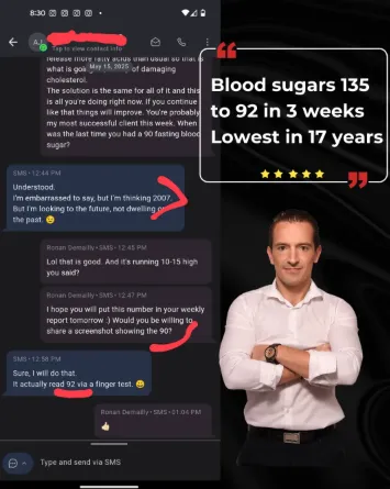 I started working with Ronan to improve my A1C, but the impact went far beyond what I expected. With his guidance, I not only made real progress on my blood sugar, but also dramatically improved my lipid panel, lost more weight than I ever thought possible, and most importantly, I learned how to eat real food with a solid, sustainable plan for long-term success. Ronan’s approach is practical, encouraging, and results-driven. He helped me build habits that actually stick, and I feel healthier and more confident than ever.