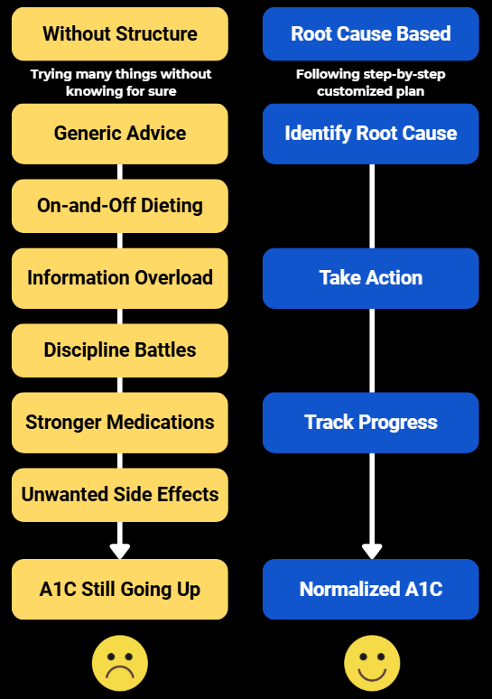 Here’s what their lives used to look like (and if you’ve ever tried to lower your A1C, reduce meds, lose weight, or rebuild your energy, you’ll relate to this immediately)…